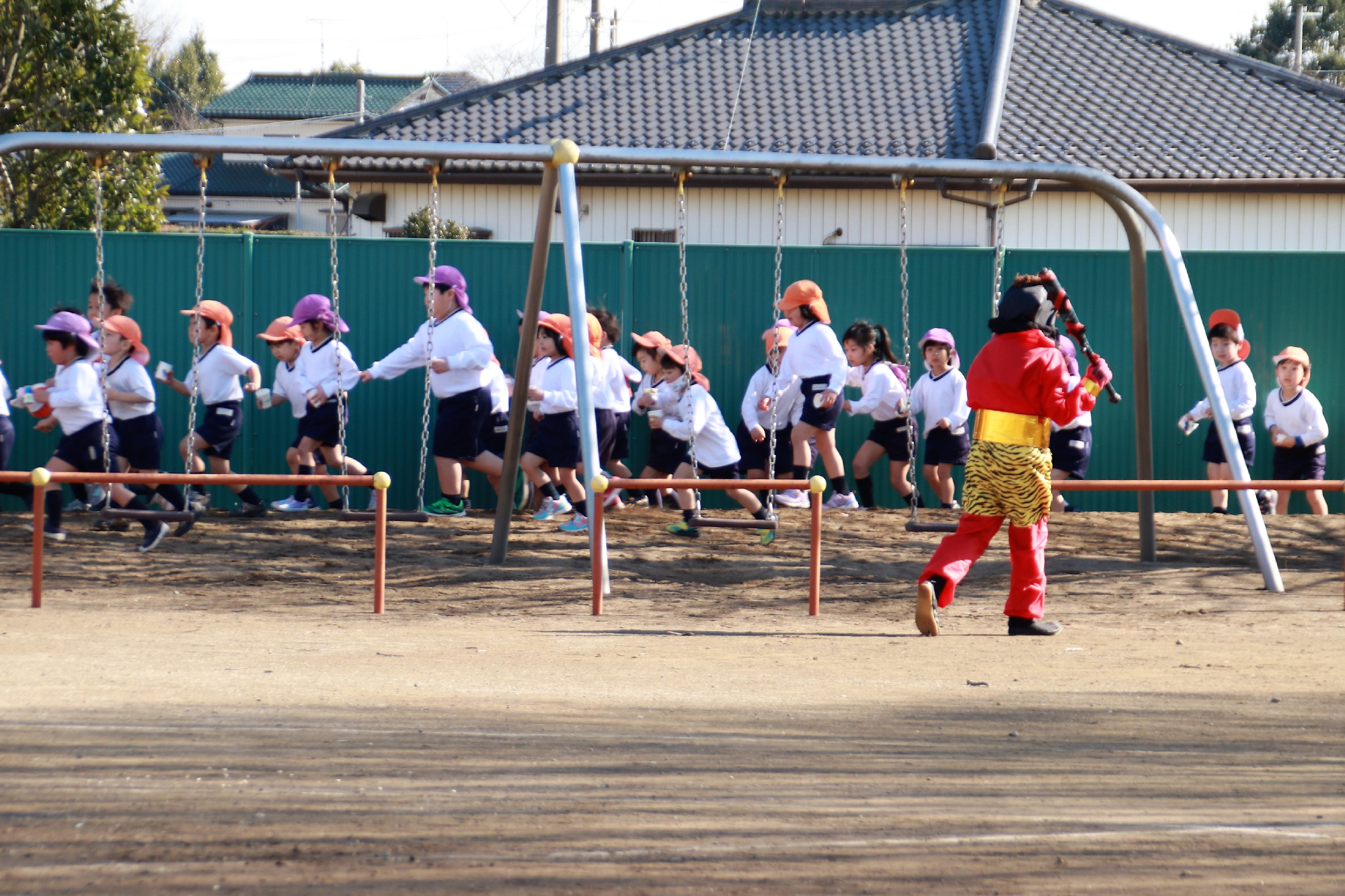 豆まきを行いました。鬼の登場にびっくりし、泣き出してしまう子もいましたが、豆をぶつけることは出来ました😊