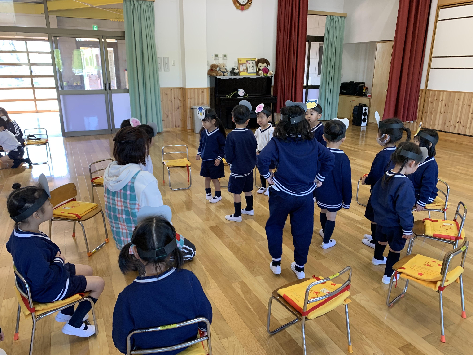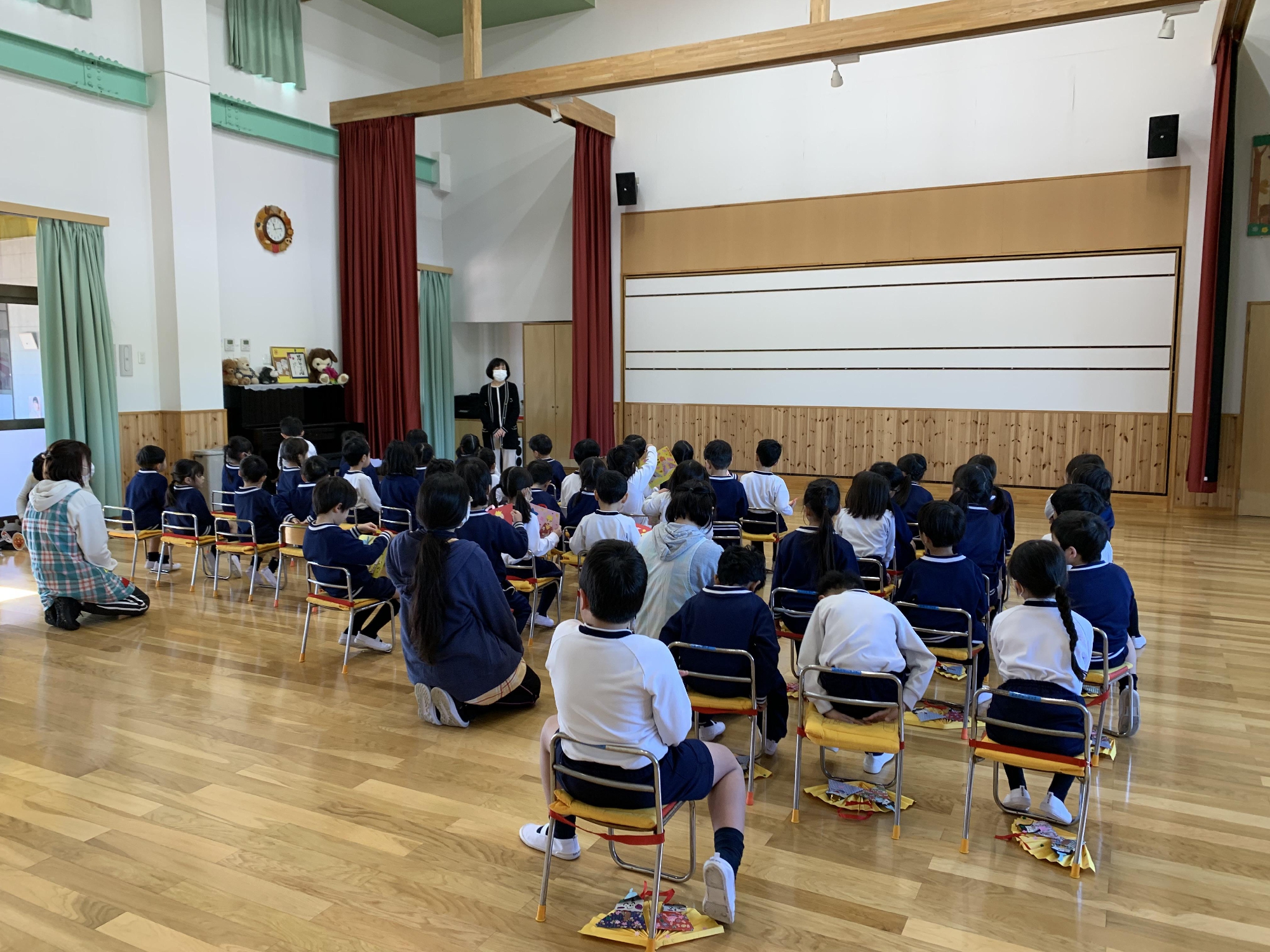 ひなまつり集会では、自分たちで作った制作で記念撮影したり、おたのしみゲームを行いました。
